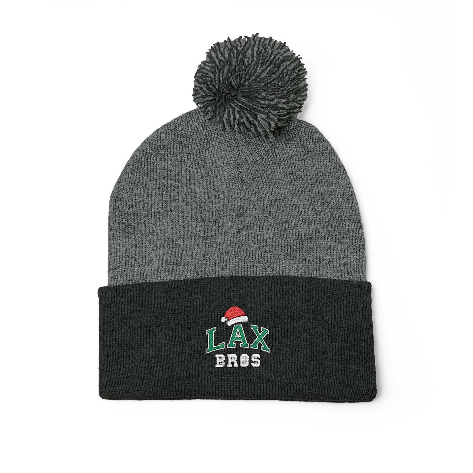 This limited-edition knit beanie features the festive LAX BROS logo topped with a Santa hat — clean, bold, and ready for the holiday season. The soft 100% acrylic knit and classic pom-pom up top make it perfect for practices, post-game hangs, or Christmas morning coffee runs.